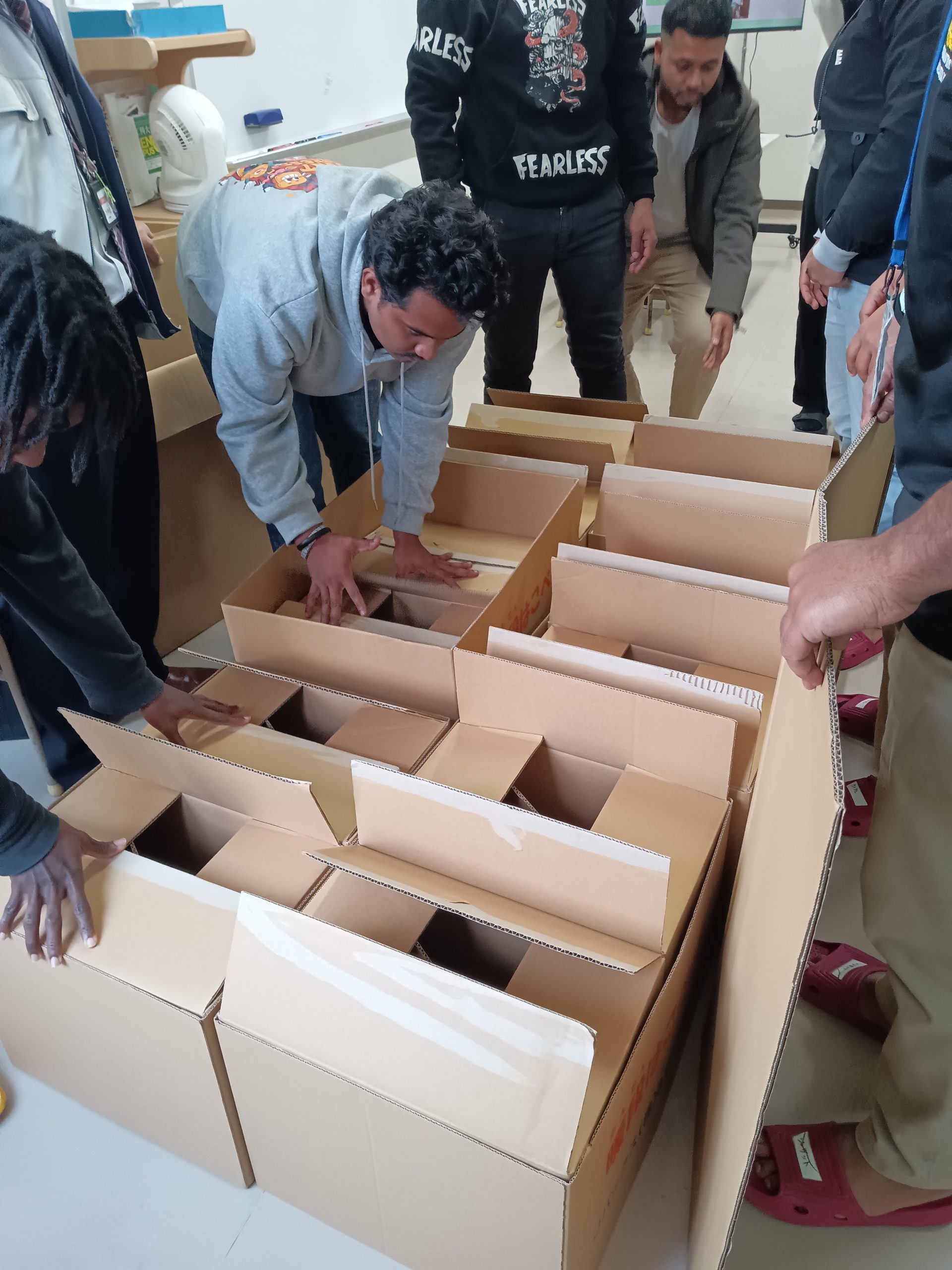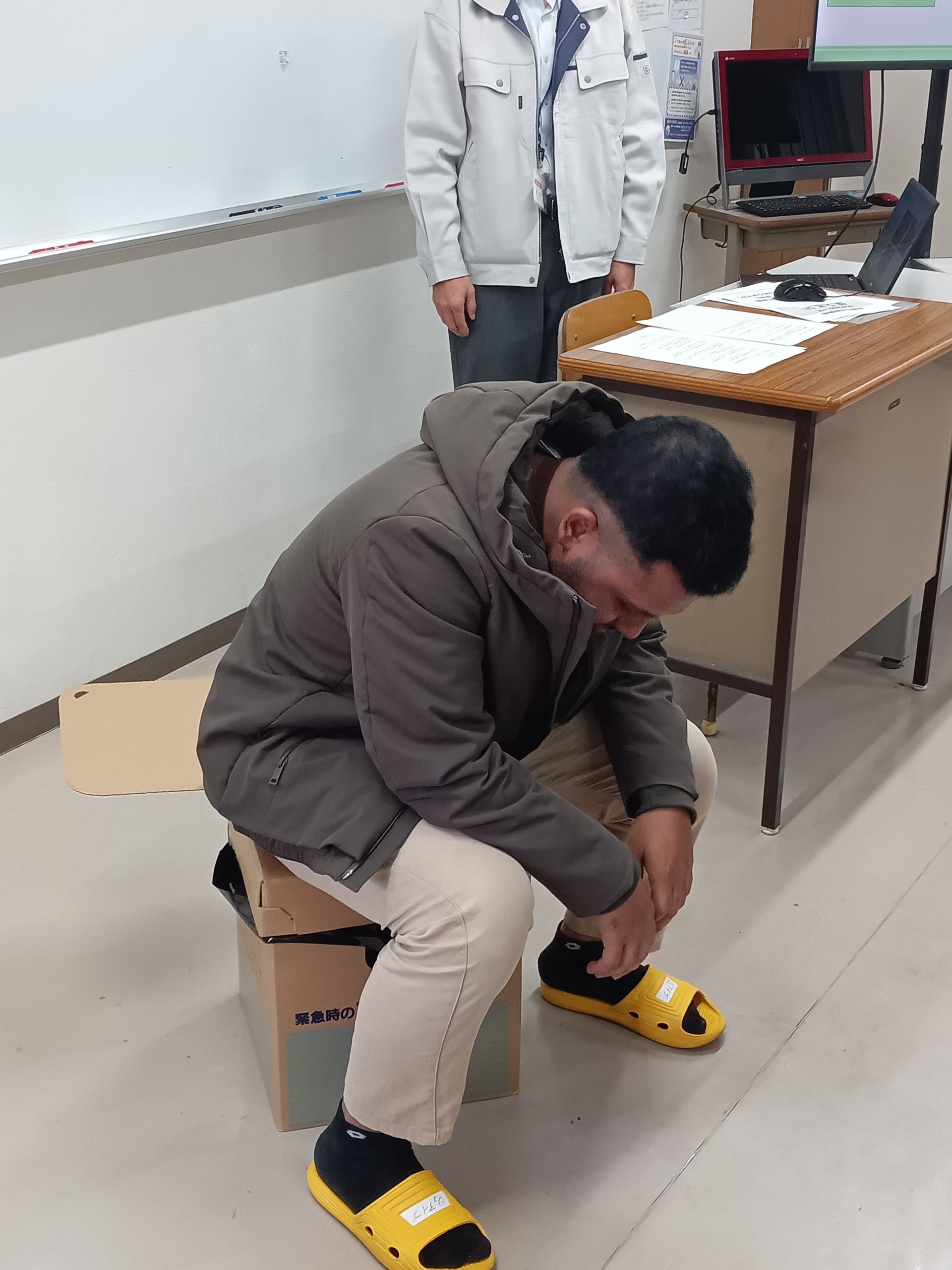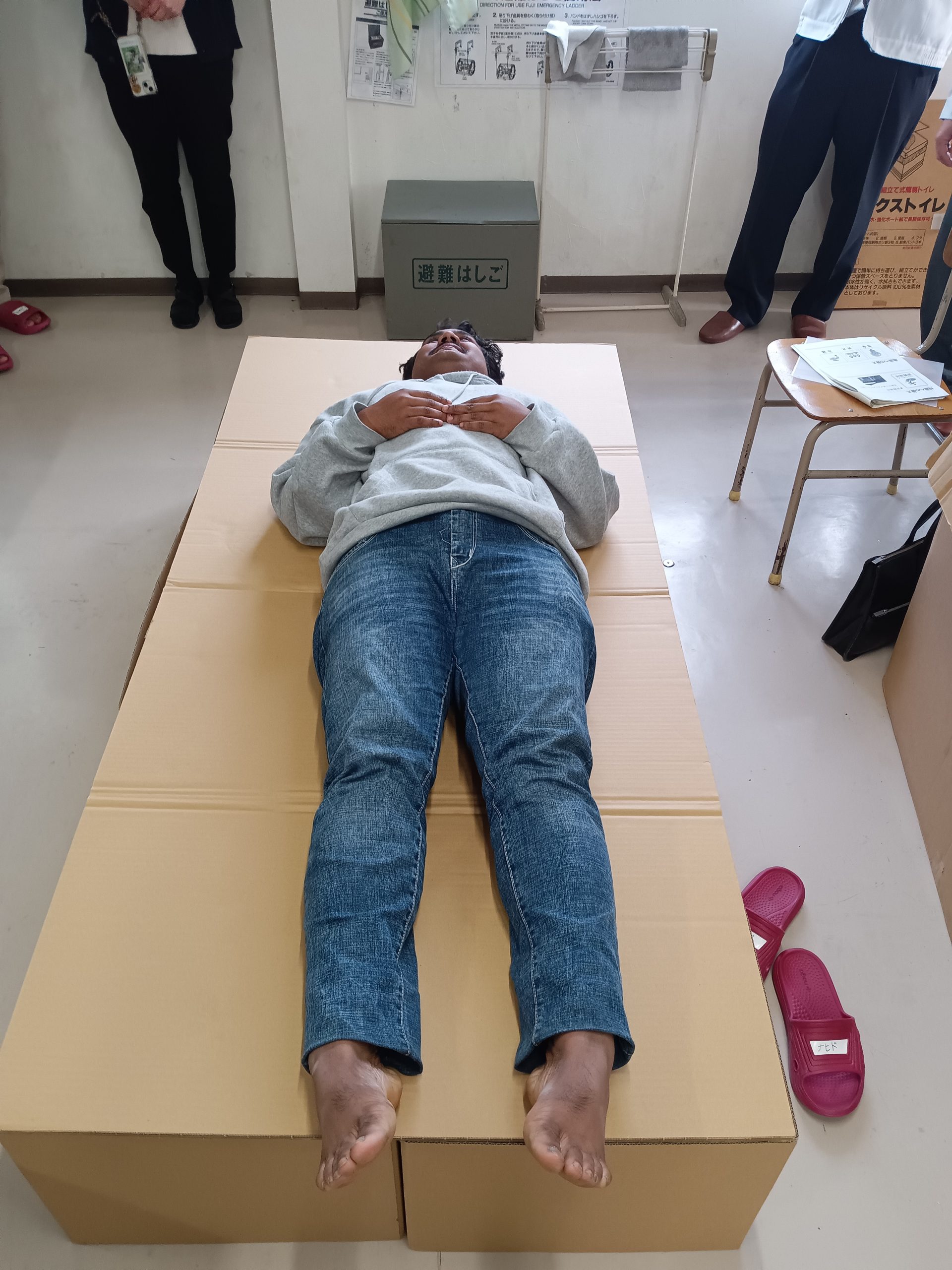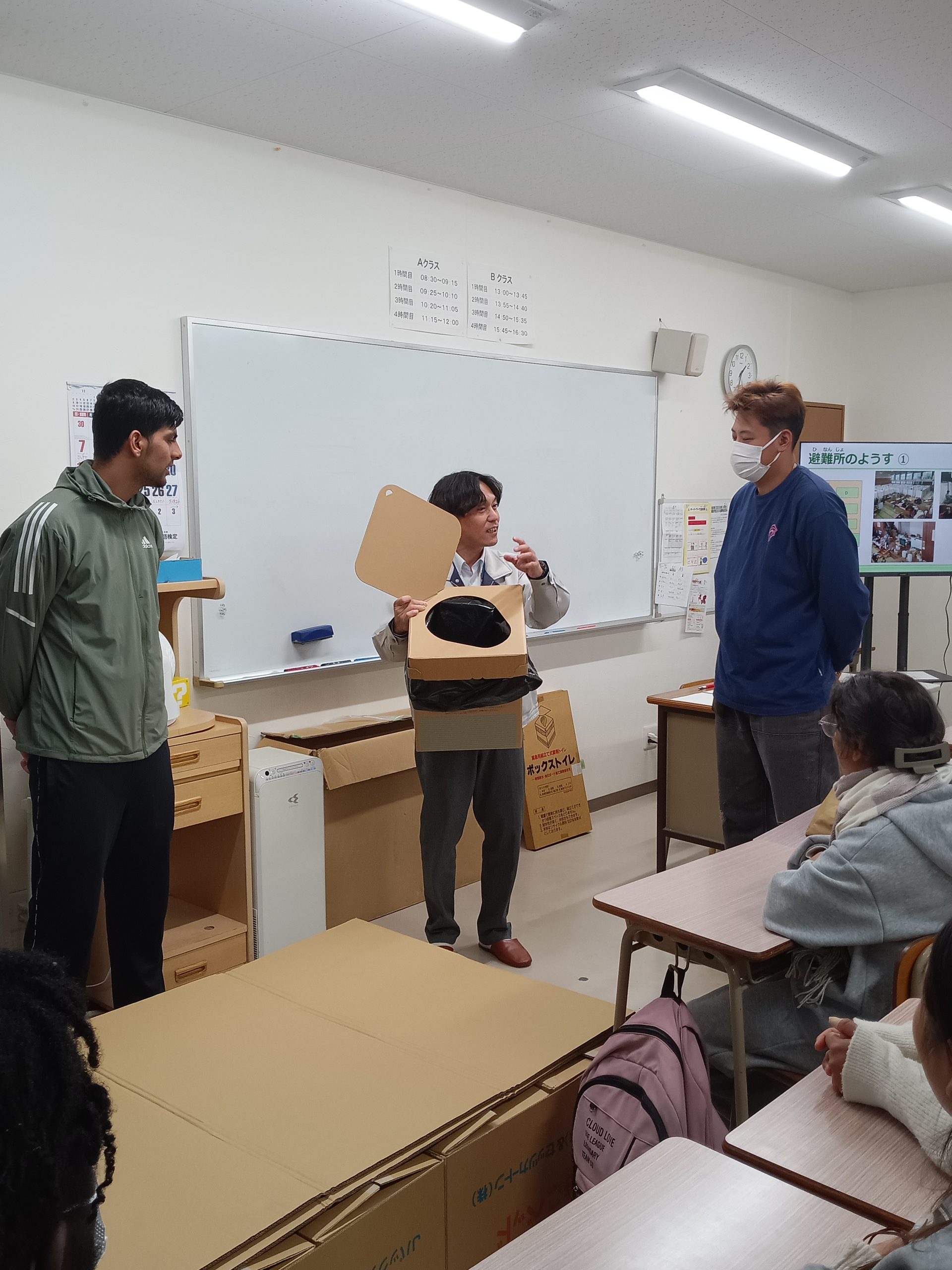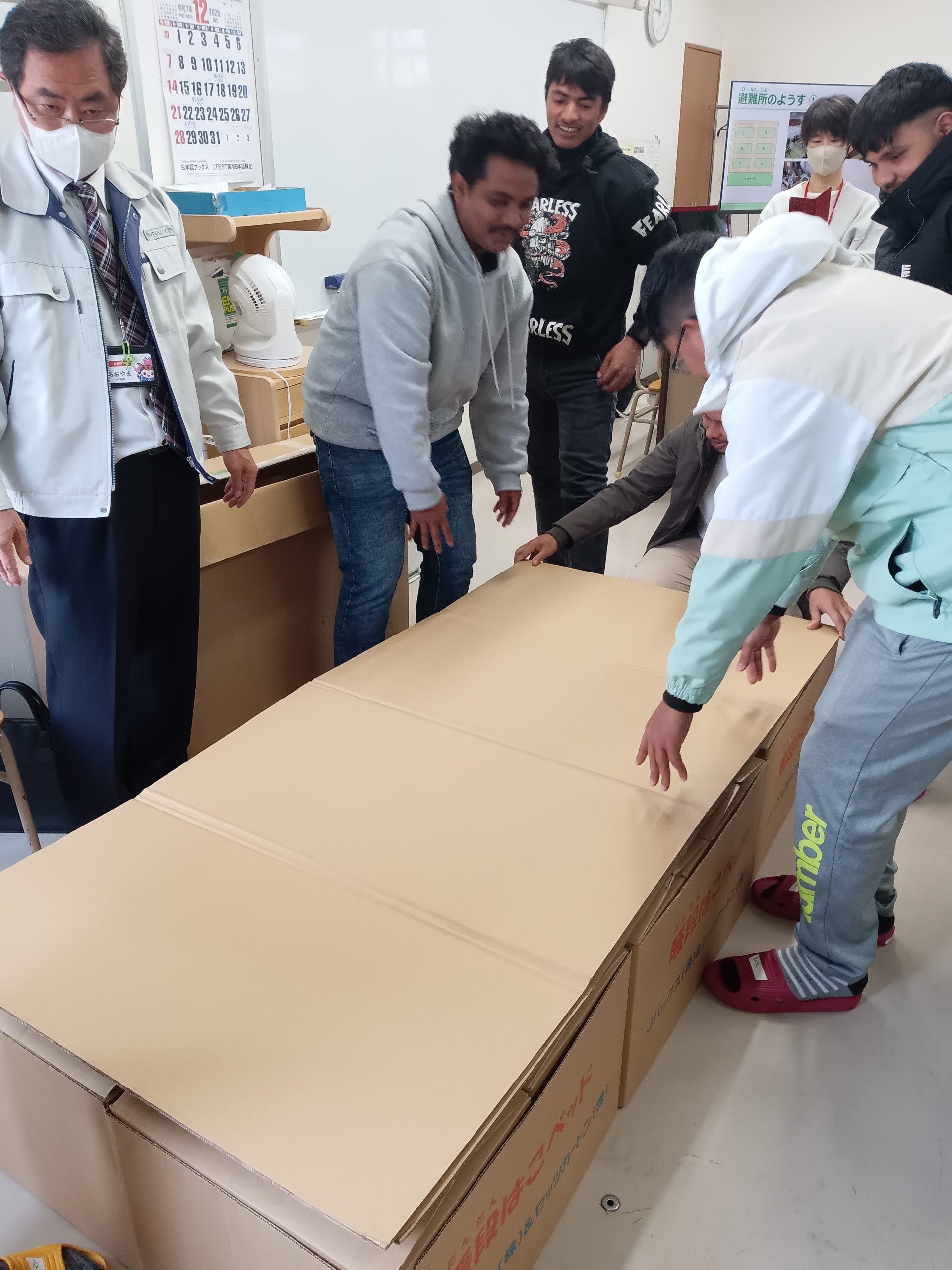 段(だん)ボールベッドやトイレをくみたてました🛏🚽