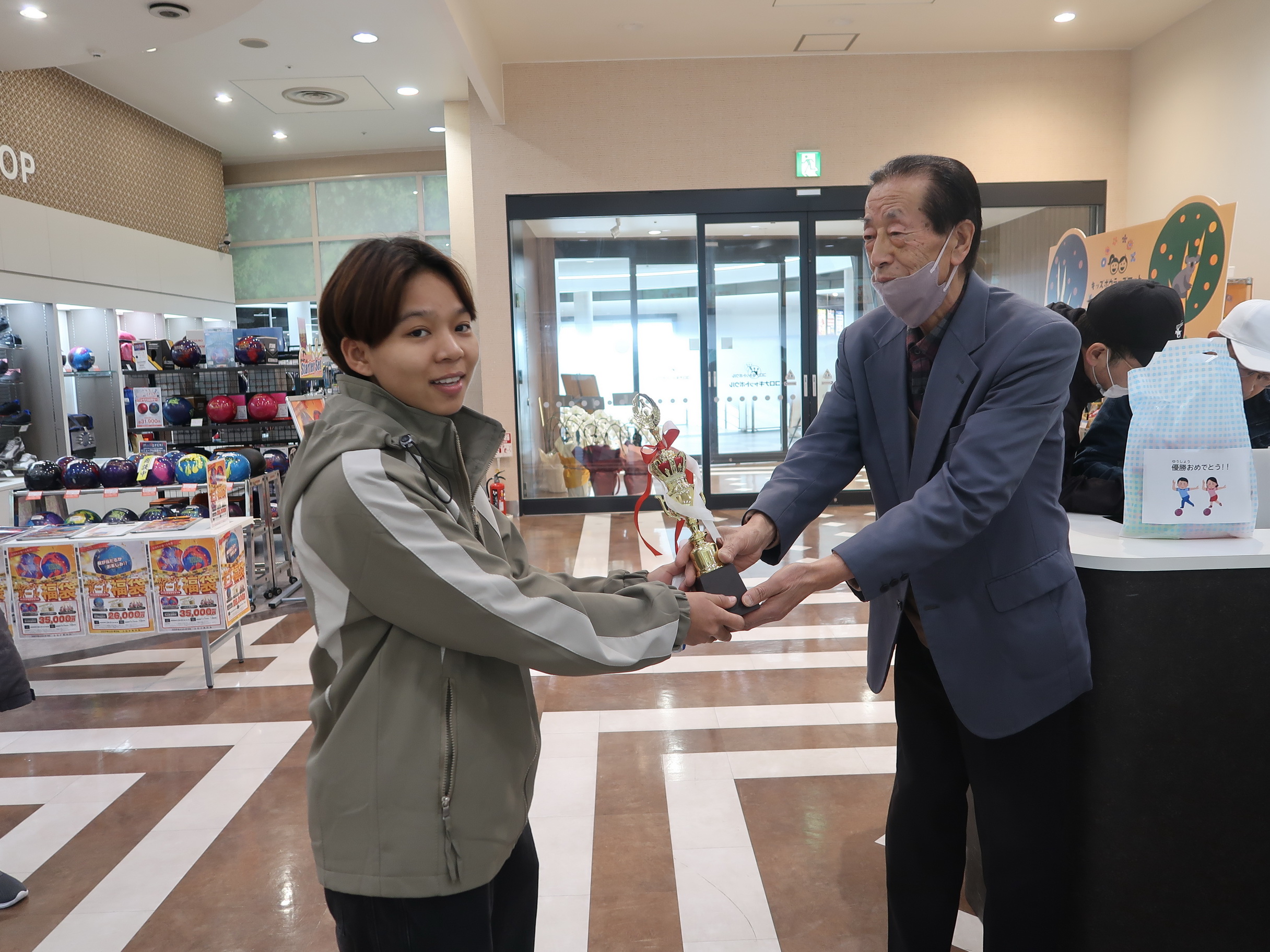 おめでとうございます。トロフィーと優勝(ゆうしょう)メダル、賞品(しょうひん)をもらいました