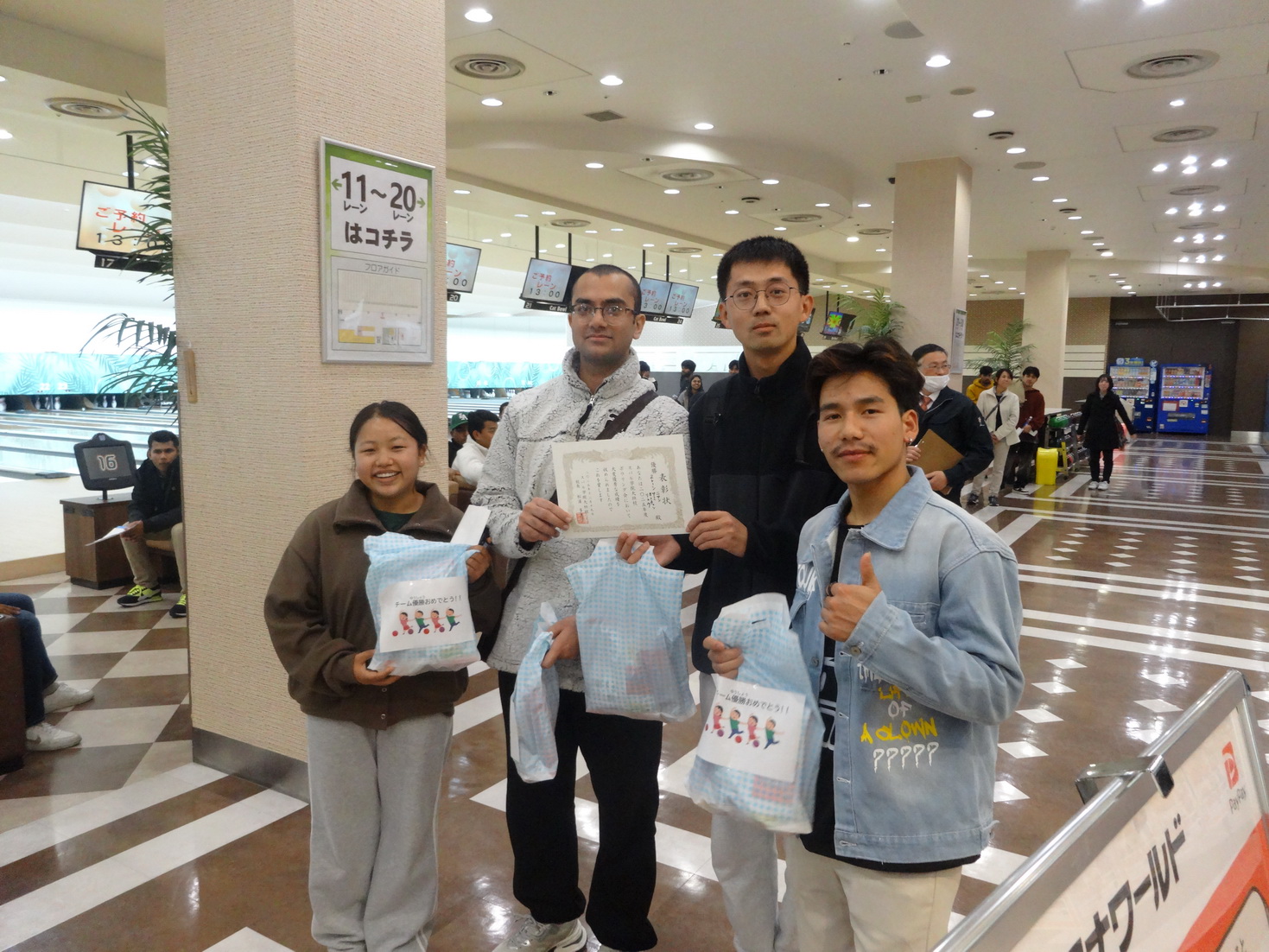 午後のゲームで優勝(ゆうしょう)したチームは  2番レーンのチーム(4名)です。