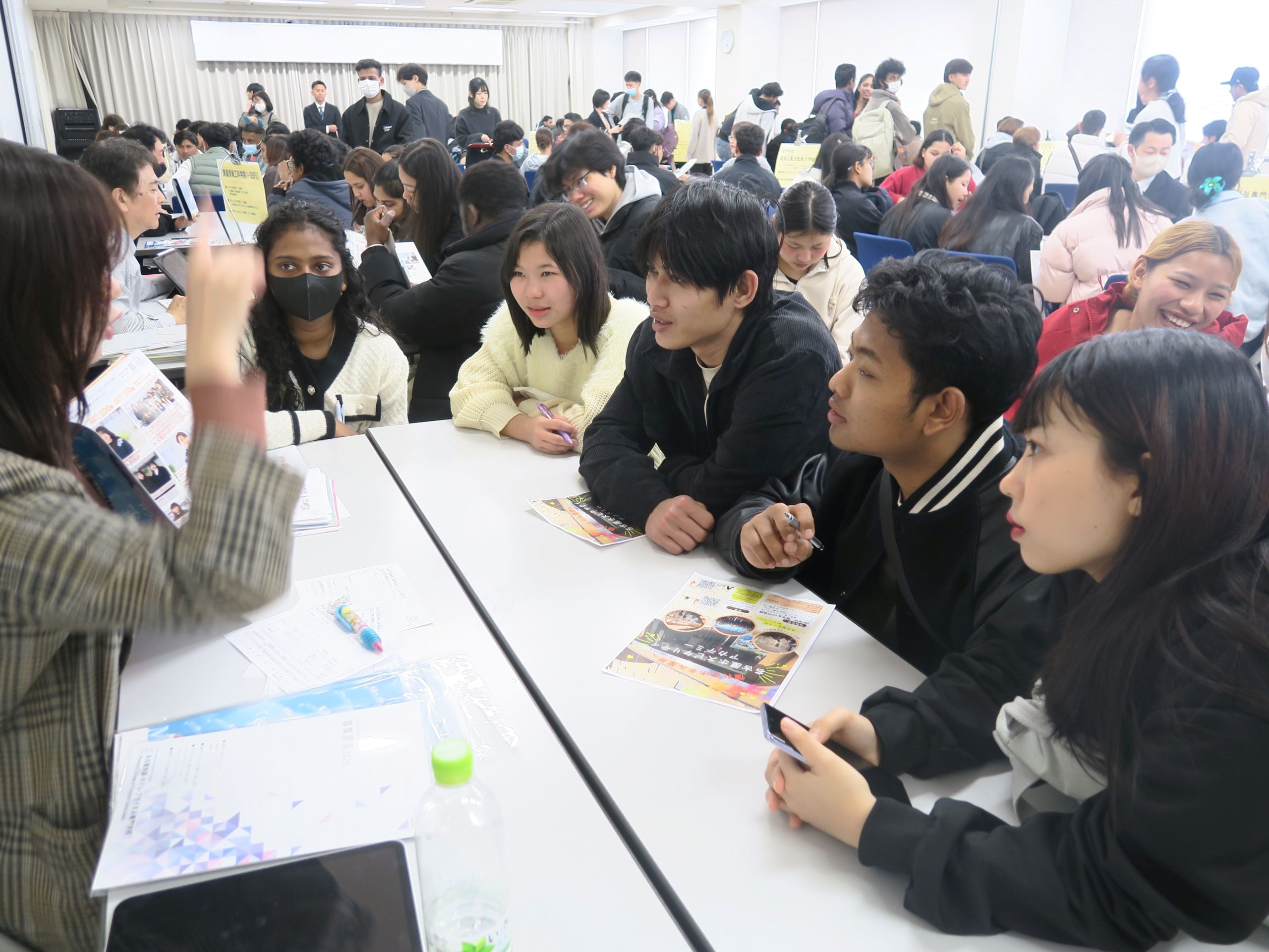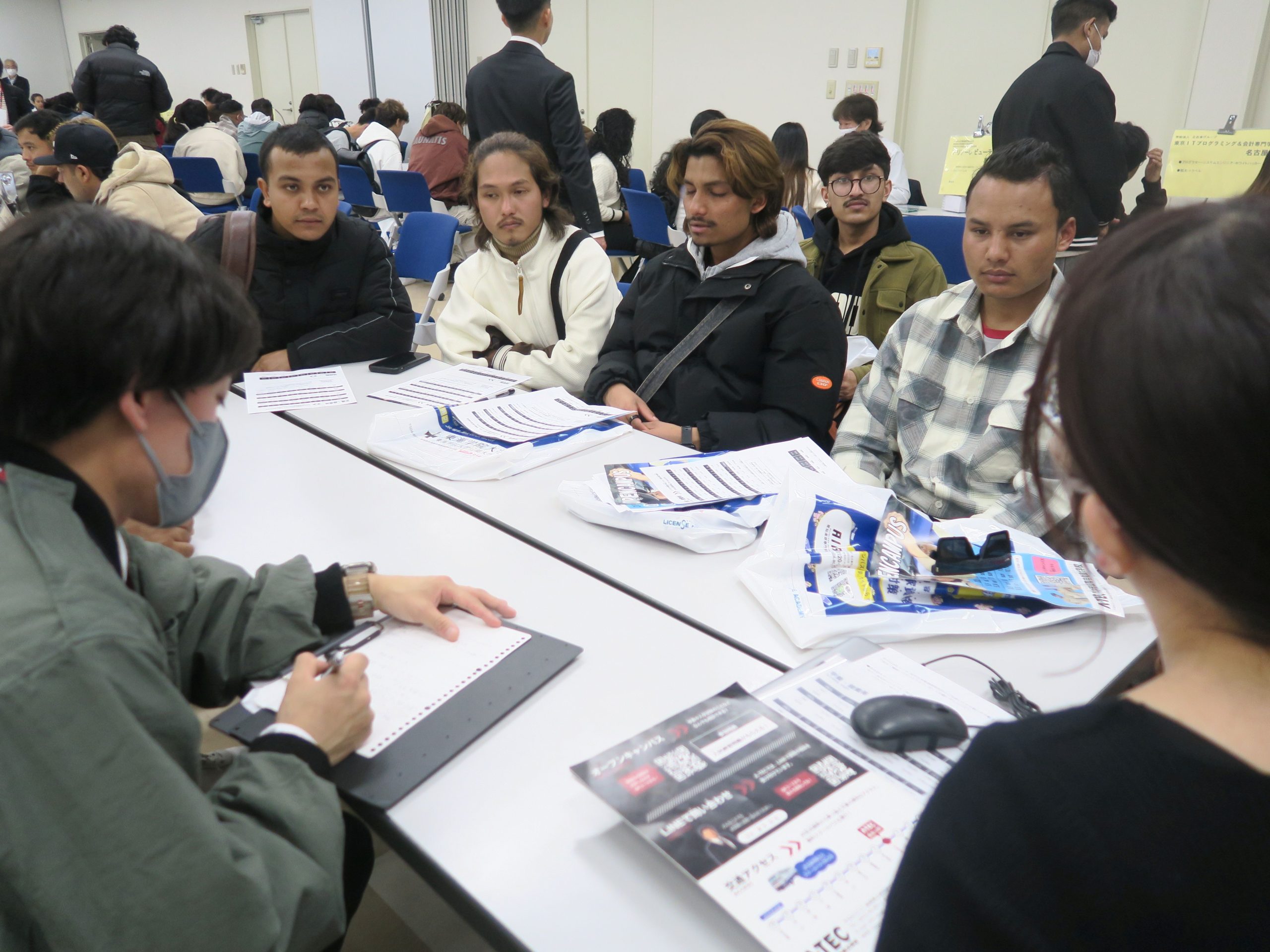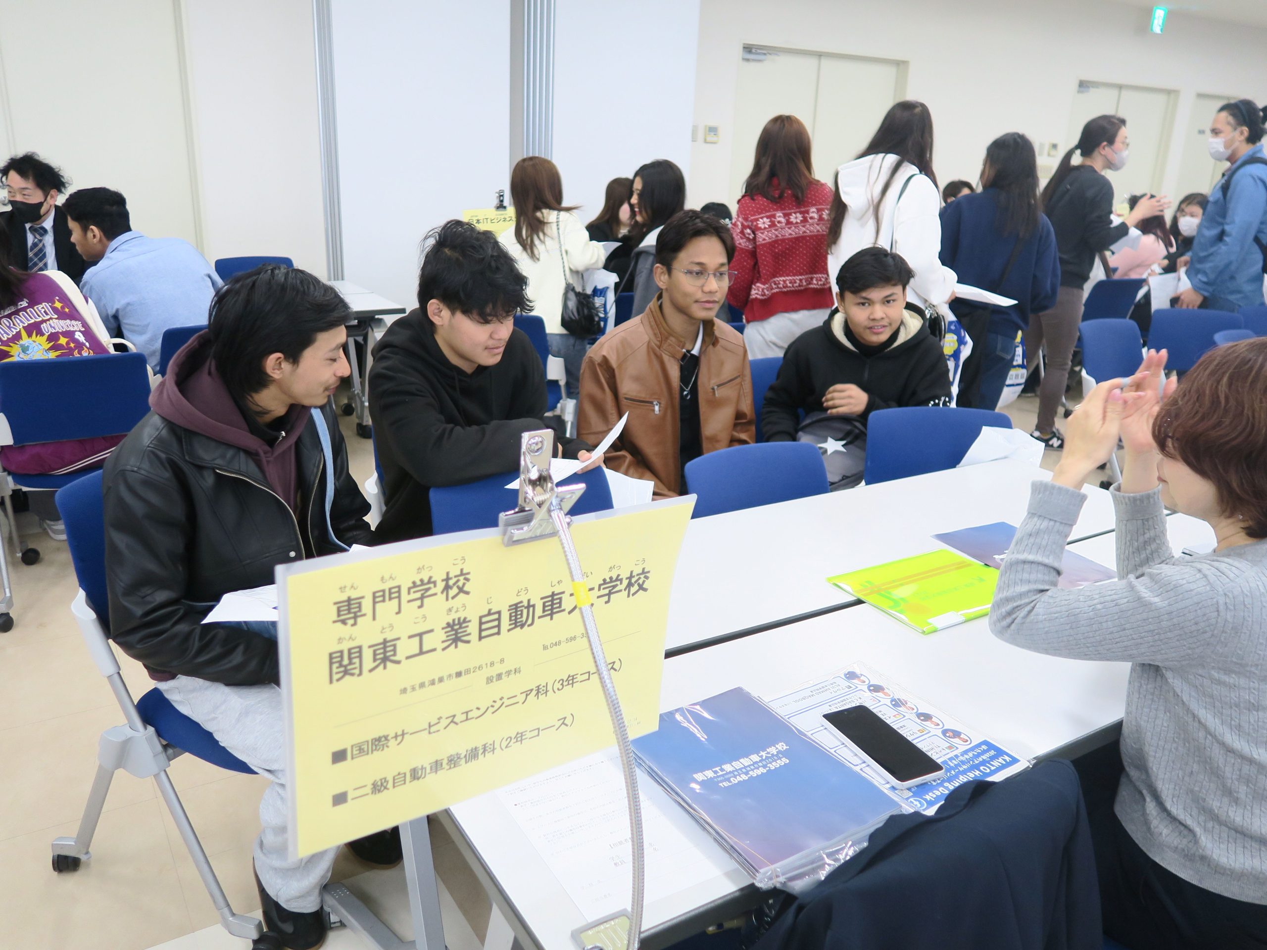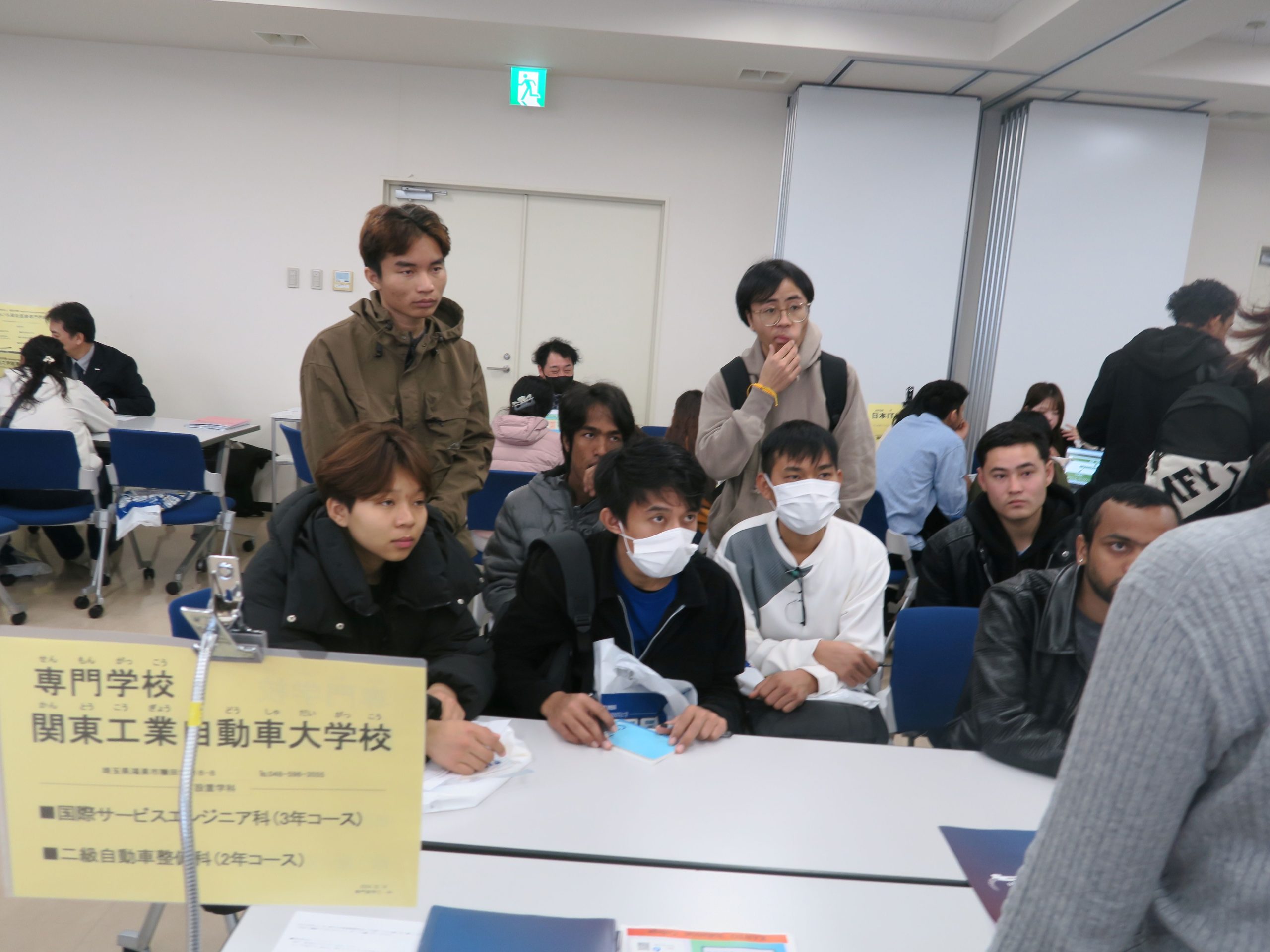 自動車(じどうしゃ)や コンピュータ関連(かんれん)介護(かいご)、飛行機(ひこうき)、美容関係(びようかんけい)の専門学校(せんもんがっこう)に 学生(がくせい)が たくさん 集(あつ)まっていました!