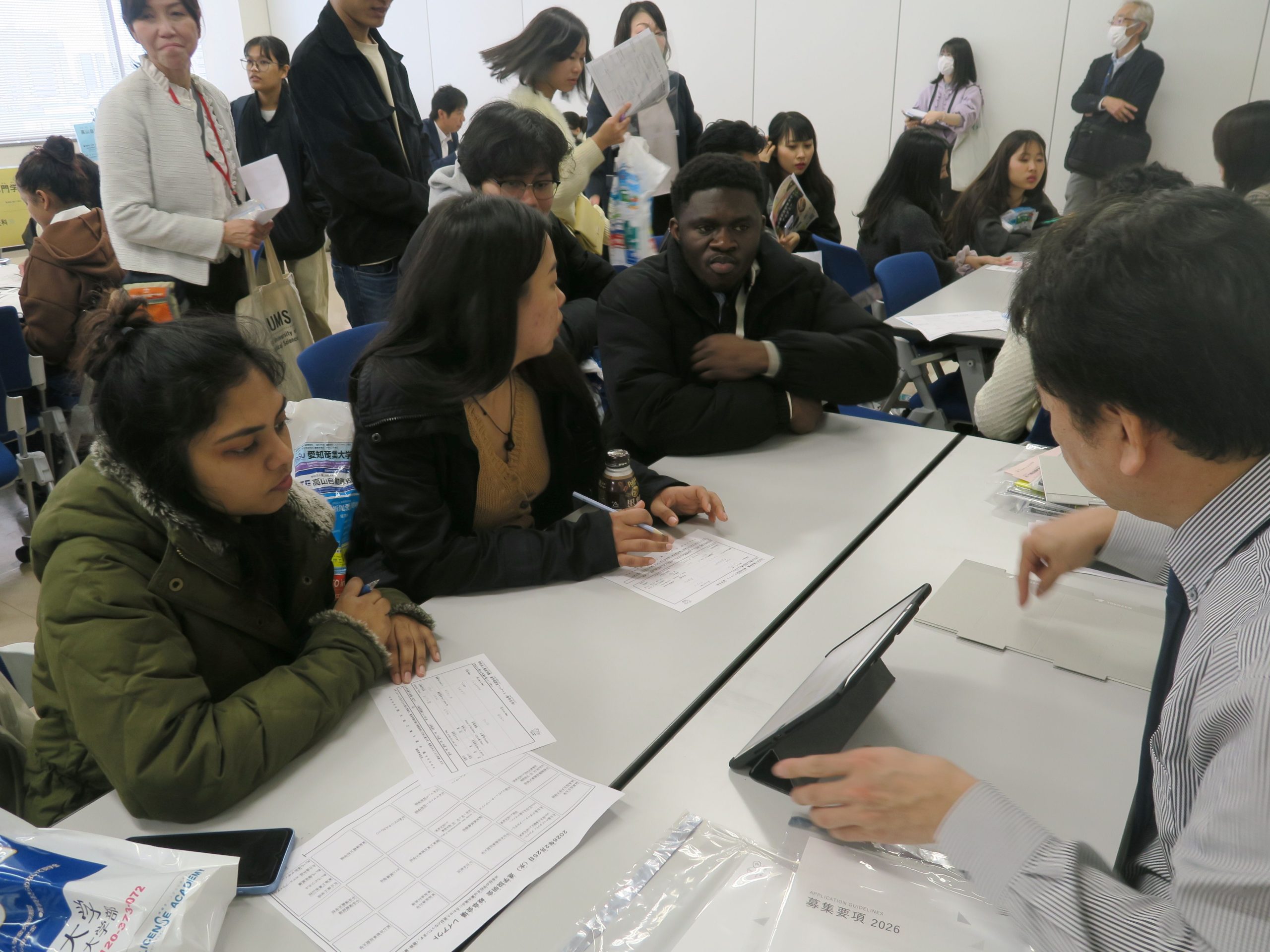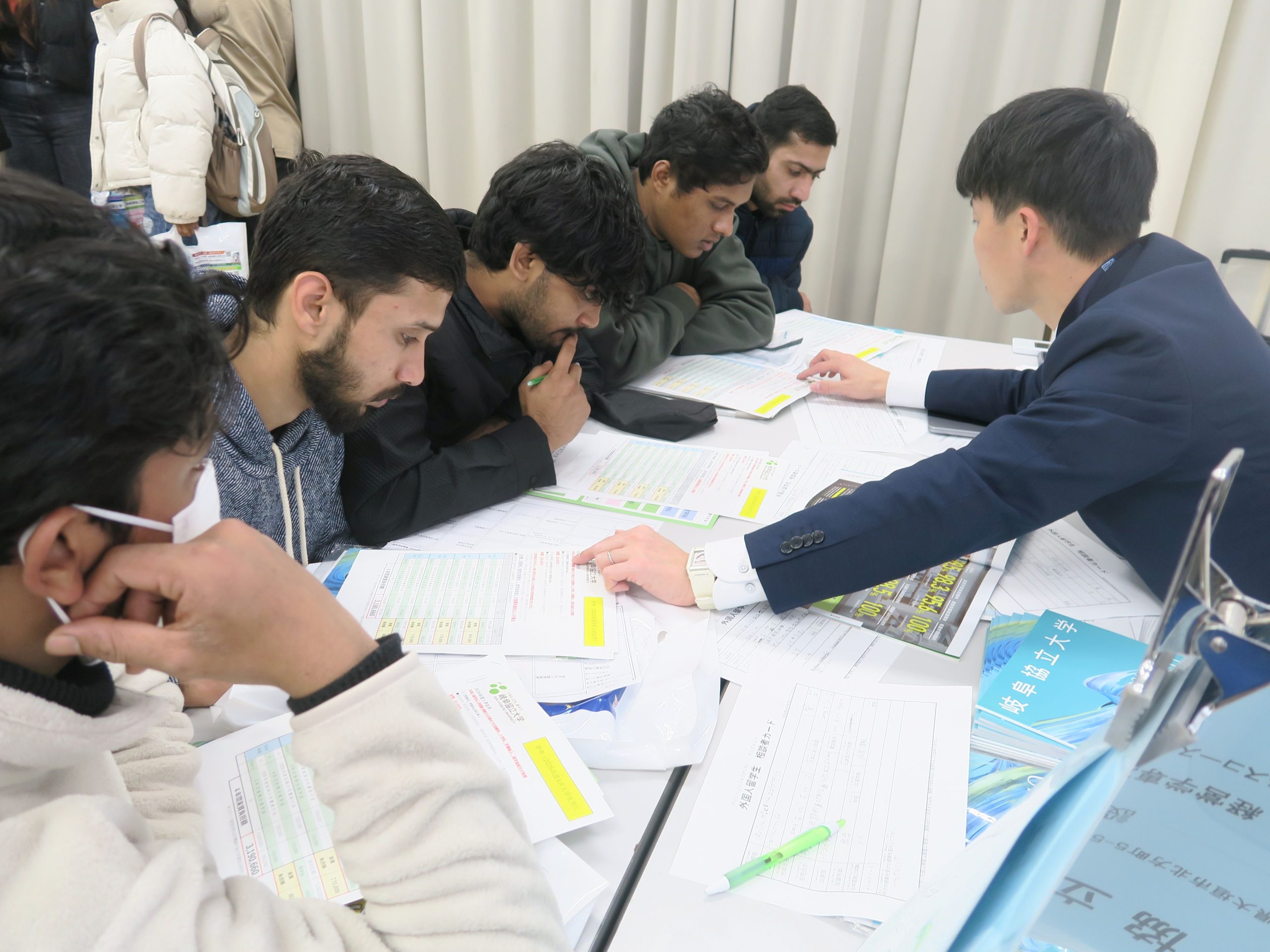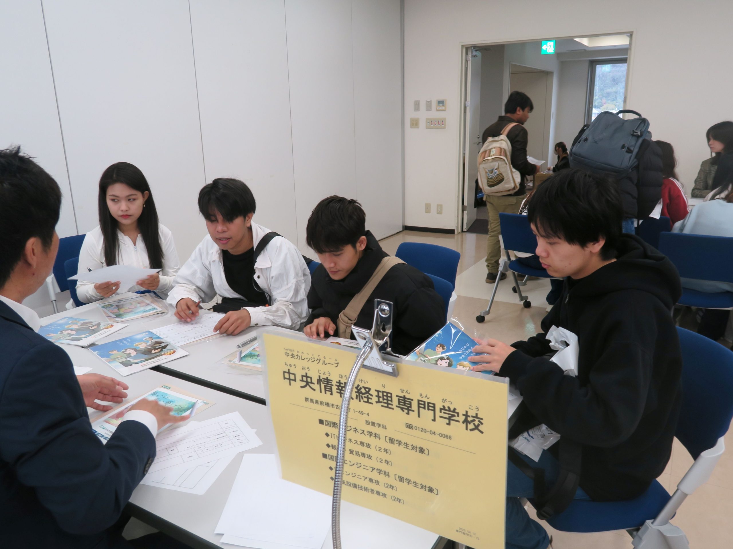 みんな、自分(じぶん)の進路(しんろ)に合(あ)わせて真剣(しんけん)に学校(がっこう)の先生(せんせい)の話(はなし)を聞(き)いていました。