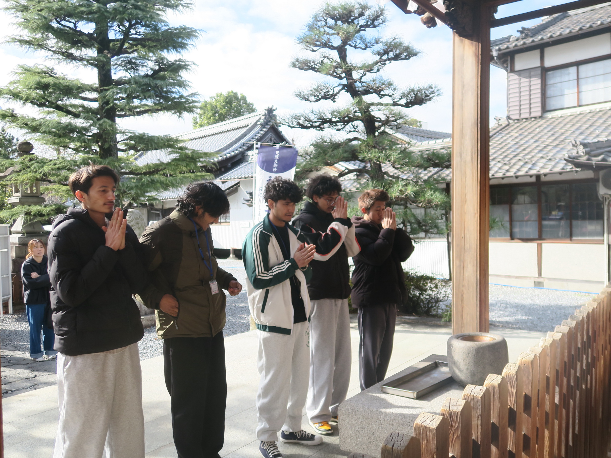 大垣校では1月7日〜1月9日にかけてクラスごとに近くにある八幡神社(はちまんじんじゃ)に初詣(はつもうで)に行きました。