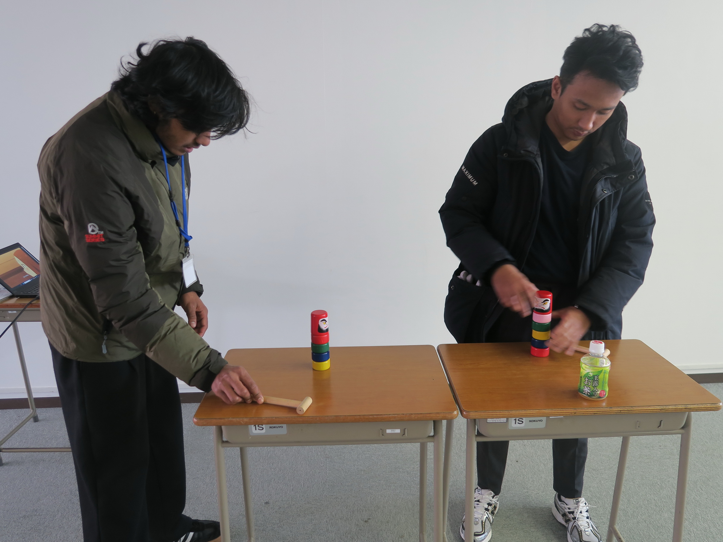 ダルマおとし で遊びました。ダルマおとし は落とすタイミングが難しいですね